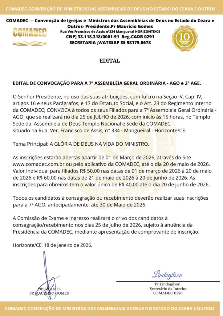 Comadec-Convenção Nacional de Igrejas e Ministros das Assembleias de Deus no Estado do Ceará e Outros